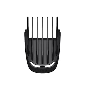O kit inclui 10 acessórios para aparar barba, cabelo e pelos do corpo, além de aparador para nariz e orelhas. Os pentes variam de 0,5 mm a 16 mm, com ajustes de precisão para cada área do corpo, incluindo áreas íntimas.