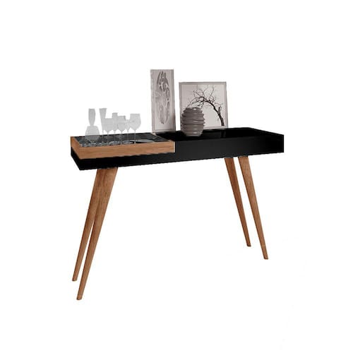 Descrição: Conta com um design moderno e elegante, possuindo uma bandeja espelhada ideal para colocar objetos de enfeite ou utensilios, como copos e tacas.Seu tampo possui acabamento em Laca Off White abaixo do vidro garantindo uma suavidade. Ideal para hall de entrada e salas.O aparador vem para trazer muito estilo ao ambiente. Especificacoes do produto: TAMPO: Em MDF 15mm, Vidro sobreposto laqueado em pintura PUBandeja em lâmina cinamomo, espelhada. MEDIDAS DO TAMPO:Altura:15cmLargura: 1,20cmProfundidade: 40cm PESO: 14,5 kg Estrutura: MDF LaqueadoBandeja: EspelhadaPÉS:Em madeira maciça de eucaliptoMEDIDAS:Altura: 82cmLargura:10cmPESO: 1,8 kgInformações Importantes:- A Mobile Moveis não se responsabiliza pela montagem e instalação dos produtos. A montagem deve ser realizada por um profissional, conforme as instruções do manual do produto. A responsabilidade da montagem é do consumidor.- Os Objetos que ambientam as imagens não acompanham o produto- Pode haver alguma diferença de tonalidade entre a foto e o produto, devido ao tratamento de imagens e a calibração do seu monitor ou dispositivo- A entrega é realizada por transportadora, não nos responsabilizamos, no ato da entrega por desmontagens, subir escadas/elevadores ou transporte por guincho para apartamentos. Eventuais despesas são de responsabilidade do consumidor.- Antes de comprar o seu produto verifique as medidas e o local onde pretende instalar.