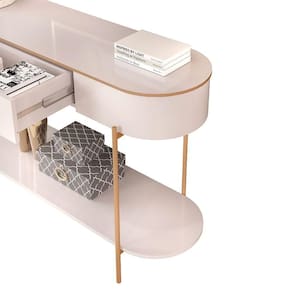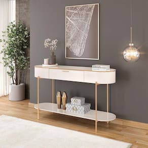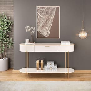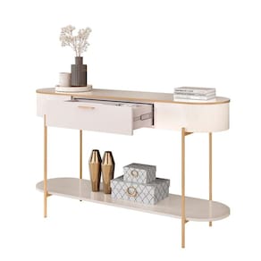 Aparador Decorativo Amanda 1 Gaveta E 1 Prateleira Pés Metálicos Dourados Off White G18 - Gran Belo