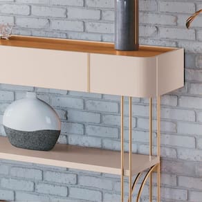 Com detalhe orgânico como os cantos arredondados, esse aparador moderno é perfeito para enaltecer a decoração de qualquer ambiente, desde sala de estar, sala de jantar, hall de entrada, escritório e recepção, ou até mesmo como divisor de ambientes. Além dessa versatilidade, esse aparador estilo industrial também é muito funcional, já que oferece um amplo espaço sobre o tampo e prateleira inferior para expor objetos decorativos ou até mesmo para criar um cantinho do café elegante. Para completar a lista de atributos, delicadeza das laterais com filetes decorativos e os pés de aço maciço com acabamento em tom dourado adicionam um toque de elegância.