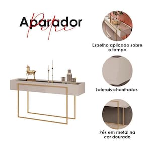 Está procurando móveis para montar sua sala? Apresentamos para você este belo conjunto composto pelo aparador e a mesa de centro da linha Petri. O aparador possui estrutura robusta e linha refinada, com laterais chanfradas valorizando o acabamento. Seu tampo com espelho aplicado requinte e sofisticação. Já os pés em metal na cor dourado garantem mais estabilidade, durabilidade e elegância. A mesa de centro segue com a mesma proposta, combinando com o aparador. Com espelho aplicado sobre o tampo, bordas chanfradas e os pés em metal na cor dourado. Fabricados pela DJ Móveis, são desenvolvidos em MDP/ MDF proveniente de madeira de reflorestamento. Combinando praticidade, design e sofisticação, é perfeito para quem está buscando qualidade e sustentabilidade para elevar o estilo do seu ambiente. Confira e aproveite!