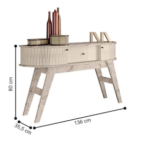 O Aparador é feito em MDP 15/25mm. Possui 1 prateleira para acomodar objetos decorativos, 2 portas curvas em MDF e 1 gaveta com corrediça telescópica.