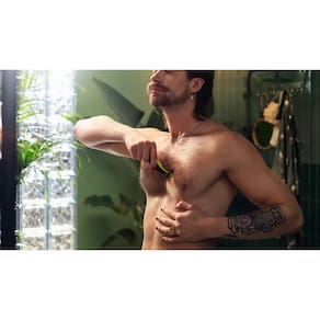O OneBlade não barbeia tão perto da pele quanto uma lâmina tradicional, deixando sua pele confortável. Use a lâmina facilmente em qualquer direção e qualquer comprimento de pelo, no rosto ou no corpo. Inclui duas lâminas: uma para o rosto e outra para o corpo.