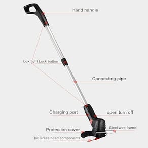Material: ABS + liga de alumínio Cor: preto Tamanho da embalagem: 38,5 × 16,5 × 6,5 cm Peso da embalagem: 0,68 kg Lista de embalagem: 1 × aparador, 1 × haste extensível, 1 × alça, 1 × protetor de detritos, 20 × zíper, 1 × cabo USB, 1 × manual do usuário (inglês) Este aparador elétrico sem fio apresenta um design leve e uma alça extensível, facilitando o manuseio durante o corte jardins e jardins, reduzindo a tensão e melhorando o conforto durante o uso. Alimentado por uma bateria de lítio de 2000mAh, este aparador opera continuamente por 2 a 4 horas, proporcionando um corte de grama eficiente sem a necessidade de recarga constante, perfeito para grandes pátios. Com uma velocidade de 13.000 RPM, o aparador garante uma experiência de corte de grama suave e rápida, capaz de lidar com uma variedade de tipos de grama com facilidade. O baixo nível de ruído (85dB) aumenta a conveniência durante a operação. Projetado com uma alça ergonômica e proteção contra detritos incluída, este aparador minimiza o desconforto enquanto protege contra grama voadora e detritos, tornando-o mais seguro e agradável de usar. O aparador vem com 20 presilhas para facilitar a fixação da cabeça de corte, tornando-o versátil e fácil de usar. O design compacto permite fácil armazenamento e portabilidade, enquanto o cabo USB garante uma recarga sem complicações.