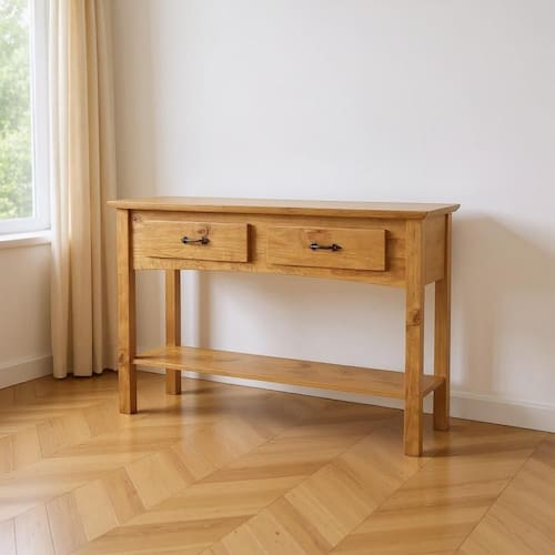 Ideal para apoiar e expor objetos decorativos, bandejas e itens do dia a diaDesign elegante que valoriza ambientes residenciais e comerciaisEstrutura robusta com alta durabilidadeVisual moderno aliado à estética natural da madeira maciçaVersatilidade de uso como aparador ou móvel de apoioDados Técnicos do Produto