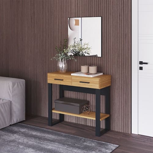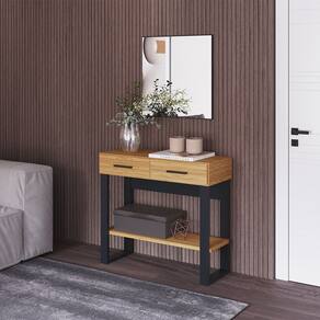 Aparador Estilo Industrial em MDF com 02 Gavetas e Prateleira F31 Freijó Preto Fosco Dalla Costa - Aparador Estilo Industrial com 02 Gavetas e Prateleira