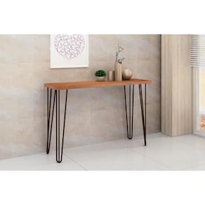 Pés robusto de quatro pernas em tubular na cor café, este aparador possui medidas de altura de 82cm, largura de 15cm e profundidade de 15cm, garantindo estabilidade e durabilidade.