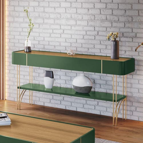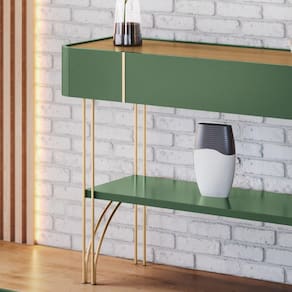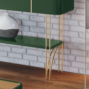 Requinte e sofisticação traduzidos em peças contemporâneas que enaltecem as formas orgânicas dos cantos arredondados, aparador com prateleira inferior de 25mm ideal para compor a decoração ou ser utilizado como divisor de ambientes. Laterais com filetes decorativos, pés de aço maciço 3/8 com acabamento em tom dourado, produzidos em MDP e MDF de 15mm. MODELO: Vivant