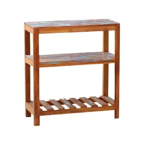 Madeira MaciçaAparador ilha bancada de 80cm em madeira maciça, acabamento pátina, ideal para decorar e organizar ambientes. Possui duas prateleiras para armazenagem, estrutura robusta e acabamento com verniz especial, garantindo durabilidade e requinte.