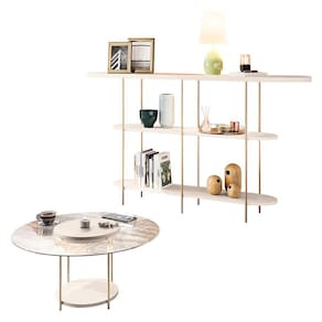 - Prateleiras com amplo espaço para objetos decorativos
