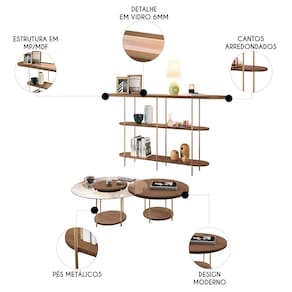 Conteúdo da Embalagem: 1 aparador, 2 mesas de centro.