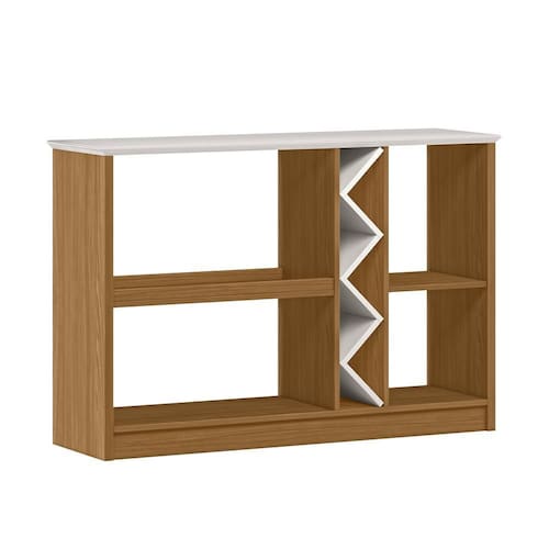 ESPECIFICAÇÕES: Estrutura em MDF Pintura UV Tampo em MDF Vidro 3mm colado sobre o tampo Prateleiras Adega para garrafas