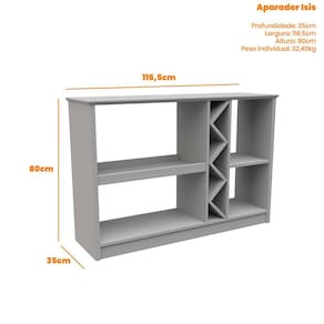 Aparador Isis com Adega - New Ceval O Aparador Isis possui um design elegante e moderno, com a estrutura em MDF e tampo em MDF com vidro de 3mm colado sobre ele, proporcionando um acabamento sofisticado. Possui prateleiras para organização e uma adega para armazenamento de garrafas, adicionando funcionalidade e estilo ao ambiente.