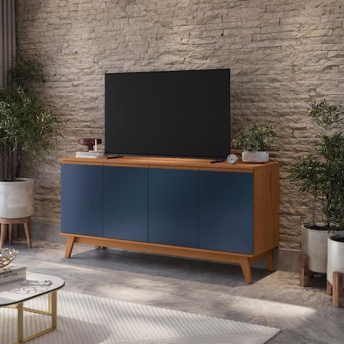 Transforme sua sala de estar com a beleza e a qualidade do Aparador 4 portas R262 da Kappesberg. Com um design clássico, ele se encaixa perfeitamente em todos os espaço. São 74cm de altura, 1,56m de largura e 54cm de profundidade, produzido com estrutura em MDP de 15mm e portas MDF de 18mm, o que garante mais robustez, firmeza e qualidade ao seu produto, além de um acabamento lindo. E com sete camadas de pintura, tanto na parte interna quanto na externa, a caixaria, em pintura touch na cor canela, conta com a textura dos veios da madeira, enquanto as portas são na cor azul profundo, com acabamento fosco. Uma combinação linda e moderna, que trará diferencial e destaque para a sua sala de estar. Unindo o conforto do amadeirado e a modernidade do azul, você terá um ambiente com design e estilo para receber sua família e amigos com conforto e sofisticação. Com quatro portas, e quatro prateleiras, você terá amplo espaço para guardar seus itens com praticidade, deixando sua sala de estar sempre organizada. A base e os pés completam o design e a qualidade do produto, garantindo seu acabamento clássico e rústico. Nas portas, o destaque fica para o sistema de amortecimento, garantindo um fechamento suave e sem ruídos, além de mais durabilidade, e o puxador cava embutido proporciona o toque de beleza que faltava, deixando sua sala de estar perfeita.