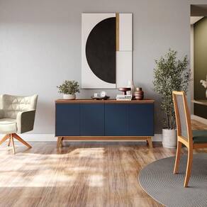 Transforme sua sala de estar com a beleza e a qualidade do Aparador 4 portas R262 da Kappesberg. Com um design clássico, ele se encaixa perfeitamente em todos os espaço. São 74cm de altura, 1,56m de largura e 54cm de profundidade, produzido com estrutura em MDP de 15mm e portas MDF de 18mm, o que garante mais robustez, firmeza e qualidade ao seu produto, além de um acabamento lindo. E com sete camadas de pintura, tanto na parte interna quanto na externa, a caixaria, em pintura touch na cor canela, conta com a textura dos veios da madeira, enquanto as portas são na cor azul profundo, com acabamento fosco. Uma combinação linda e moderna, que trará diferencial e destaque para a sua sala de estar. Unindo o conforto do amadeirado e a modernidade do azul, você terá um ambiente com design e estilo para receber sua família e amigos com conforto e sofisticação. Com quatro portas, e quatro prateleiras, você terá amplo espaço para guardar seus itens com praticidade, deixando sua sala de estar sempre organizada. A base e os pés completam o design e a qualidade do produto, garantindo seu acabamento clássico e rústico. Nas portas, o destaque fica para o sistema de amortecimento, garantindo um fechamento suave e sem ruídos, além de mais durabilidade, e o puxador cava embutido proporciona o toque de beleza que faltava, deixando sua sala de estar perfeita.