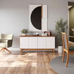 Transforme sua sala de estar com a beleza e a qualidade do Aparador 4 portas R262 da Kappesberg. Com um design clássico, ele se encaixa perfeitamente em todos os espaço. São 74cm de altura, 1,56m de largura e 54cm de profundidade, produzido com estrutura em MDP de 15mm e portas MDF de 18mm, o que garante mais robustez, firmeza e qualidade ao seu produto, além de um acabamento lindo. E com sete camadas de pintura, tanto na parte interna quanto na externa, a caixaria, em pintura touch na cor canela, conta com a textura dos veios da madeira, enquanto as portas são na cor branco, com acabamento brilho. Uma combinação clássica e linda, perfeita para todos os ambientes e para quem não abre mão de sofisticação. Unindo o conforto do amadeirado e a luminosidade do branco brilho, você terá um ambiente confortável e aconchegante para receber sua família e amigos. Com quatro portas, e quatro prateleiras, você terá amplo espaço para guardar seus itens com praticidade, deixando sua sala de estar sempre organizada. A base e os pés completam o design e a qualidade do produto, garantindo seu acabamento clássico e rústico. Nas portas, o destaque fica para o sistema de amortecimento, garantindo um fechamento suave e sem ruídos, além de mais durabilidade, e o puxador cava embutido proporciona o toque de beleza que faltava, deixando sua sala de estar perfeita.
