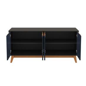 Acabamento: Pintura Fosco | Cor: Preto fosco/Azul profundo | Garantia: 3 meses para defeito de fabricação | Matéria-prima: MDF | Puxadores: Puxador embutido | Quantidade de portas: 4 | Sistema de montagem: Parafuso Philips | Tipo de porta: Bater | Montagem: Necessita montagem | Profundidade: 54 | Requer montagem: Sim | Largura: 156 | Inclui manual de montagem: Sim | Quantidade de caixas da embalagem: 2 | Comprimento: 156