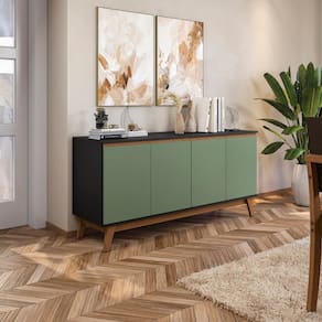 E com sete camadas de pintura, tanto na parte interna quanto na externa, a caixaria é em pintura na cor preto fosco com o acabamento fosco, enquanto as portas são na cor verde oliva, com acabamento fosco. Uma combinação linda e aconchegante, perfeita para compor a sua sala de estar de um jeito único, e remetendo aos tons da natureza, você terá o espaço ideal para preparar suas receitas com praticidade.