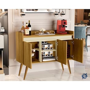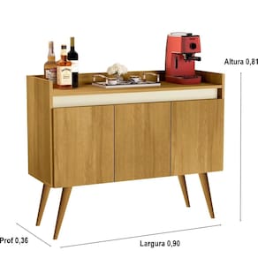 Aparador Luxo 3 Portas cor Madeirado / Off white Aparador Buffet 3 Portas Luxo estilo retrô, pés palito, embalado com caixa reforçada nas laterais para não ocorrer no transporte. Comprar Moveis em Casa deixa seu ambiente mais bonito e sofisticado DIMENSÕES DO PRODUTO MONTADO Altura: 0,81 cm Largura: 0,90 cm Profundidade: 0,36 cm CARACTERISTICAS: Pés palito em madeira maciça Portas com dobradiças metalica Material: 100% MDP MONTAGEM: Este produto acompanha kit de montagem + manual de instrução detalhando passo a passo de como montar. A montagem do produto deverá ser feita por um profissional, para que não ocorram danos no produto. não nos responsabilizamos por erro de montagem Atenção: A montagem não é oferecida Comprar moveis em casa, a montagem do produto é por conta do comprador. OBSERVAÇÕES IMPORTANTES: O produto é lacrado e novo com embalagem . A é de 90 dias por defeitos de fabricação. Se no ato de recebimento do produto o cliente verificar que o produto não está em prefeito estado, principalmente por ocasião de transporte irregular, o cliente deverá recusar o recebimento do produto e entrar em contato para resolver o problema. Podem haver variações referentes à tonalidade das cores expressas nas fotos, por conta de fatores como iluminação e brilho de cada monitor/celular. Fotos meramente ilustrativas, não acompanham os produtos de decoração. Se atente a politica de troca/devolução da empresa.