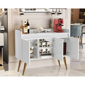 Aparador Junior Luxo 3 Portas Pés Palito Cor Branco O Aparador Junior Luxo é perfeito para deixar o seu ambiente mais bonito e sofisticado. Com um estilo retrô, possui 3 portas e pés palito em madeira maciça, trazendo um charme especial para a sua decoração. Fabricado com material 100% MDP, esse aparador é resistente e durável. Suas portas contam com dobradiças metálicas, garantindo um fechamento seguro e fácil. As dimensões do produto montado são: - Altura: 0,81 cm - Largura: 0,90 cm - Profundidade: 0,36 cm O Aparador Junior Luxo é entregue desmontado, mas acompanha um kit de montagem e um manual de instruções detalhado, para que você possa montá-lo facilmente. No entanto, é recomendado que a montagem seja feita por um profissional, a fim de evitar danos ao produto. A desse produto é de 90 dias contra defeitos de fabricação. Caso você receba o produto e identifique algum problema, principalmente decorrente do transporte, é importante recusar o recebimento e entrar em contato conosco para resolver a situação. As fotos são meramente ilustrativas e não acompanham os produtos de decoração. Além disso, pode haver variações na tonalidade das cores devido a fatores como iluminação e configuração de cada monitor ou celular. Para mais informações sobre trocas e devoluções, consulte a nossa política. Adquira agora mesmo o Aparador Junior Luxo 3 Portas Pés Palito Cor Branco e transforme o seu ambiente com estilo e elegância. Marca: Não Informado
