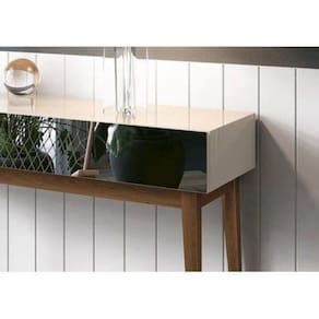 Observações: - Gavetas com espelhos colados; - Corrediças telescópicas; - Pés em madeira maciça; - Pintura Ultravioleta com acabamento fosco.