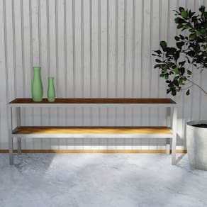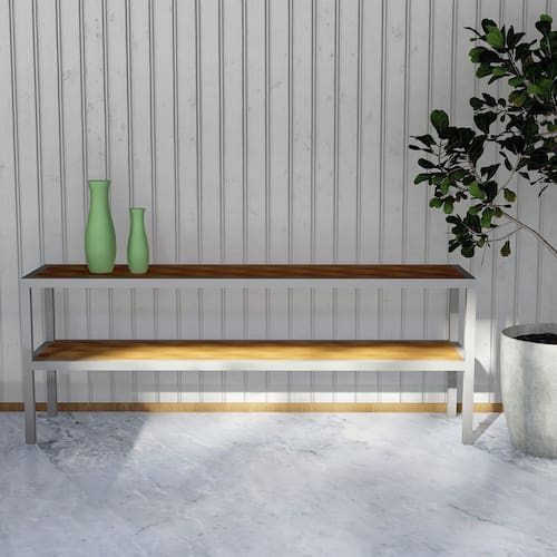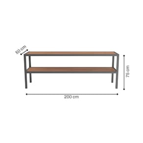 Garantia: 3 meses. Acabamento: Pintura Acabamento da Prateleira: Poliestireno Acabamento dos Pés: Pintura Altura: 75 cm Altura dos Pés: 45 cm Ambiente Principal: Jardim e Varanda codigo_ean: 7900288086396 Cor: Preto/Madeira Cor do Produto: Preto/Madeira Cor Interna: Preto Cor Predominante: Preto Escala de Brilho: Fosco Escala de Brilho da Prateleira: Fosco Estilo: Moderno Itens Inclusos: 1 Aparador Largura: 200 cm Manual de Montagem e Instalação: https://cdn2.madeiramadeira.com.br/atributo/alumi-moveis/2729080-6281-17413524115593.pdf Marca: Alumi Móveis Material da Prateleira: Madeira Maciça Material dos Pés: Alumínio Material Principal: Alumínio Necessita Montagem: Não Origem do Produto: Nacional Pés Reguláveis: Não Peso: 20 kg Peso Máximo por Prateleira: 75 kg Possui Espelho: Não Possui Possui Gavetas: Não Possui Pés: 04 Possui Portas: Não Possui Prateleiras: 02 Possui Rodízio: Não Profundidade: 50 cm Recomendações de Uso, Manutenção e Limpeza: Usar sabão neutro em um pano macio com agua morna. Resistente à Chuva: Sim Sapatas Niveladoras: Não Suporta Até (kg): 150 kg Tipo de Madeira Maciça da Prateleira: Teca Marca: Alumi Móveis