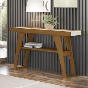 FICHA TÉCNICA: Acabamento: Na versão Off White a Pintura é UV e na versão Nature a Pintura é UV Texturizada Escala de Brilho: Fosco Material Principal: MDP Qtd. Gavetas: Não possui Qtd. Portas: Não possui Qtd. Prateleiras: 1 Und Peso Máximo por Prateleira: 15 Kg Material da Prateleira: MDP Qtd. Pés: 4 Und Pés Reguláveis: Não Material Pés: MDP Altura Pés/Rodapés: 76,5 Cm Possui Rodízios: Não Produto Suporte até -Kg-: 30 Kg Possui Vidro: Não Possui Espelho: Não Possui Iluminação: Não Possui Nicho: Não Possui Adega para quantas Garrafas: Não possui Medidas Montado: -A x L x P- 80 x 136 x 36 Cm Peso Montado: 16 Kg