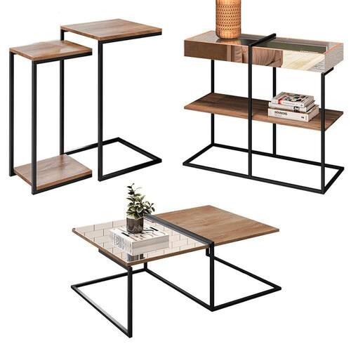 Aparador Mesa Lateral E Centro Aurum DHom, é repleto de sofisticação e elegância. Estrutura em MDP de 15 mm, pintura eletrostática (epóxi) e acabamento em BP e este super material ainda viabiliza valores mais naturais em seu visual que similiarizam aos desenhos de madeiras naturais. O aparador conta com uma prateleira, espelhos em todos os lados superiores e no tampo, e acompanha pés metálicos com proteção antioxidante. A mesa de centro conta com uma parte do tampo espelhada, e amplo espaço para acomodar objetos decorativos e pés metálicos com proteção antioxidante. O Kit 2 mesas laterais vem para requintar qualquer espaço de sua casa, de fato auxiliar em qualquer necessidade além de que após seu uso pode-se armazenar uma abaixo da outra otimizando o seu espaço. O kit mesas laterais suporta até 7 kg cada, o aparador e a mesa de centro 20 kg distribuídos. Esse conjunto é a opção perfeita para complementar o seu ambiente. Estes móveis chegarão na sua casa separado em 05 volumes.