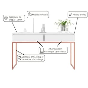 Feito em MDP com acabamento bordas em ABS. Estrutura em aço com pintura EPOXI nas cores preto.