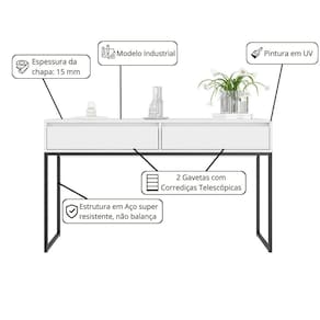Feito em MDP com acabamento bordas em ABS. Estrutura em aço com pintura EPOXI nas cores preto.