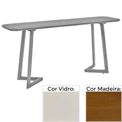 Aparador MH-5345 Herval 160 cm Madeira Amêndoa Vidro Off White Base Amêndoa