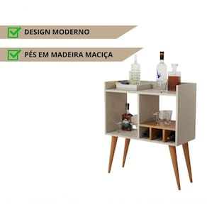 Aparador Moderno Com Adega Para Vinhos, Porta Taças E Mini Bar Branco