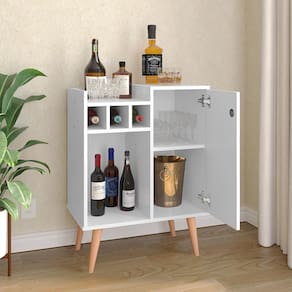 Aparador Moderno Retrô com Adega e Porta Cantinho Sala Estar Pequeno Nala Branco - Lojas RPM