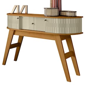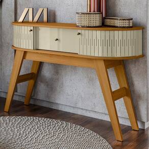 MDPAparador Estoril, com design retrô e linhas curvas, trazendo o charme que transforma seu ambiente. Estrutura em MDP 15/25 mm, tampo e base com cantos curvos, assim como suas 2 portas de correr, com detalhes em frisos vazados e sistema de abertura por trilho plástico. Composto por 1 gaveta central equipada com corrediças telescópicas, 4 pés em estilo retrô e puxadores em plástico. Acabamento em pintura UV texturizada (fosco e brilho). Este móvel será entregue em 01 volume.