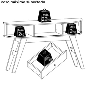 Peso máximo suportado: 25kg distribuídos