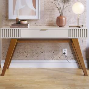 Aparador Para Sala 136 cm Com Gaveta RIV1525, uma ótima solução para compor ambientes de sala de estar, salas de jantar, hall de entrada ou até mesmo servir como divisor de ambientes. Estrutura em MDP de 15 e 25 mm, que proporcionam melhor acabamento nas bordas e superfícies, contando com pintura em acabamento UV. Composto por tampo espaçoso que pode ser utilizado para decorações, possibilitando a disposição de taças, bebidas e demais objetos, ripas decorativas em suas laterais, gaveta multiuso com corrediças telescópicas, puxador, pés em Madeira Maciça, e acompanham sapatas plásticas para proteger contra umidade do piso. Este móvel chegará na sua casa separado em 01 volume.