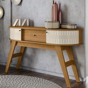 Aparador Para Sala 2 Gavetas, acrescenta beleza na sua sala de estar e otimiza o espaço. Estrutura em MDP de 15 mm e 25 mm e portas em MDF de 6 mm, conta com pintura em acabamento UV. Composto por tampo e base curvos que possibilita a disposição de decorações e demais objetos, 2 portas curvas deslizantes flexíveis, 2 gavetas com corrediças telescópicas, puxadores em bronze que combinam com seu design sofisticado, e pés de 25 mm de espessura com sapatas plásticas. Excelente solução para compor sua decoração, trazendo um toque de modernidade para seu ambiente. Este móvel chegará na sua casa separado em 01 volume.