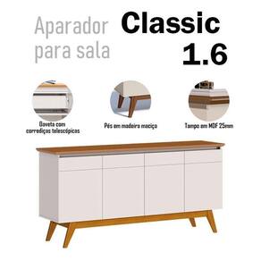 O Buffet da linha Classic combina elegância com funcionalidade. Possui uma gaveta com corrediça telescópica, garantindo um deslizamento suave e fácil acesso aos itens. Além disso, oferece duas prateleiras espaçosas, proporcionando um ótimo espaço para acomodar seus acessórios. Com quatro portas você poder manter o ambiente organizado e arrumado. Os pés em madeira maciça adicionam mais estabilidade. Produzido pela Imcal, é desenvolvido em MDP/ MDF com matérias de alta qualidade garantindo mais durabilidade por mais tempo. Com um design clássico e refinado será a escolha perfeita para quem busca qualidade, estilo e praticidade em um único móvel. Confira e garanta o seu!