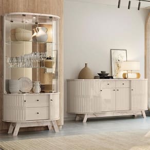 Aparador para Sala Buffet Ambiente Mônaco e Cristaleira Moss Calacata Off White – Madetec