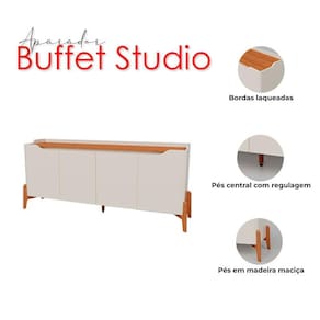 Está montando sua sala? Apresentamos para você este belo Buffet da linha Studio. Seu design moderno conta com quatro portas com as bordas laqueadas, trazendo um acabamento refinado e elegante. Possui pé central com sapata regulável, garantindo mais estabilidade mesmo em pisos irregulares. Os pés em madeira maciça adicionam um toque de robustez e estilo, reforçando sua estrutura. Fabricado pela Imcal, é desenvolvido em MDP/ MDF de alta qualidade, sendo ideal para quem deseja praticidade e sofisticação para compor sua sala. Aproveite e garanta já o seu!
