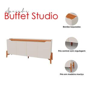Está montando sua sala? Apresentamos para você este belo Buffet da linha Studio. Seu design moderno conta com quatro portas com as bordas laqueadas, trazendo um acabamento refinado e elegante. Possui pé central com sapata regulável, garantindo mais estabilidade mesmo em pisos irregulares. Os pés em madeira maciça adicionam um toque de robustez e estilo, reforçando sua estrutura. Fabricado pela Imcal, é desenvolvido em MDP/ MDF de alta qualidade, sendo ideal para quem deseja praticidade e sofisticação para compor sua sala. Aproveite e garanta já o seu!