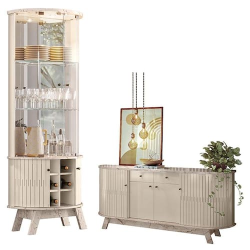 Aparador para Sala Buffet Mônaco e Cristaleira Marina Calacata Off White – Madetec
