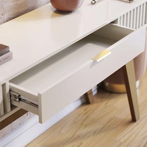 MDPAparador Rivieira, uma ótima solução para compor ambientes de sala de estar, salas de jantar, hall de entrada ou até mesmo servir como divisor de ambientes. Estrutura em MDP de 15 e 25 mm, que proporcionam melhor acabamento nas bordas e superfícies, contando com pintura em acabamento UV (Brilho). Composto por tampo espaçoso que pode ser usado para decorações, possibilitando a disposição de taças, bebidas e demais objetos, ripas decorativas em suas laterais, gaveta multiuso com corrediças telescópicas, puxador, pés em Madeira Maciça, e acompanham sapatas plásticas para proteger contra umidade do piso. Este móvel chegará na sua casa separado em 01 volume.