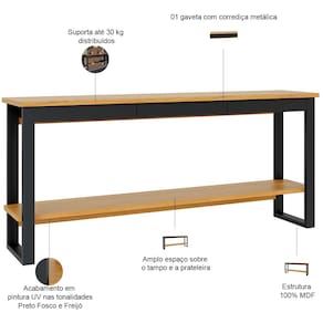 Seu design industrial ganha sofisticação através de linhas limpas e materiais nobres, tornando-o perfeito para salas de jantar que buscam um toque contemporâneo, escritórios que precisam de organização discreta ou até corredores que merecem um charme extra. Além disso, a gaveta com oferece abertura suave e eficiente, ideal para guardar talheres, toalhas ou itens de uso diário, enquanto o amplo tampo se transforma no palco perfeito para sua decoração - seja um conjunto de velas, livros elegantes ou uma bela peça de arte.