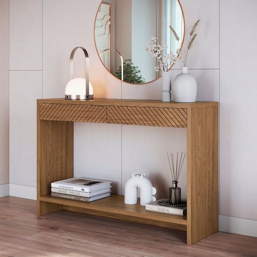 O Aparador Hall de Entrada Brisa 120cm é feito em MDP BP de 2,5cm, proporcionando alta resistência e durabilidade. Com 2 gavetas com corrediça telescópica, garante deslizamento suave e eficiente. Seu design clean e moderno é perfeito para adicionar elegância e funcionalidade ao seu hall de entrada, mantendo o ambiente organizado e sofisticado. Produto Montado: Sim Acabamento: BP Acabamento da Gaveta: BP Ambiente Principal: Sala de Estar codigo_ean: 7900288159274 Complexidade da Montagem: Média: pode ser montado por mais de uma pessoa e/ou necessite de maior conhecimento para montagem Cor: Olmo Cor do Produto: Olmo Cor do Tampo: Marrom Cor Interna: Olmo Escala de Brilho: Fosco Escala de Brilho da Gaveta: Fosco Gaveta com Chave: Não Itens Inclusos: 1 Aparador, Manual de Montagem e Kit Ferragens. Linha ou Coleção: Brisa Manual de Montagem e Instalação: https://product-hub-prd.madeiramadeira.com.br/991842/documents/c783b71d-910b-4dc8-85cb-c6bb7f6444a12866062588817453202476905.pdf Marca: Metta Mobili Material da Gaveta: MDF/MDP Material do Tampo: MDP Material Principal: MDP Necessita Montagem: Sim Origem do Produto: Nacional Peso: 31,5 kg Peso Máximo por Gaveta: 5 kg Possui Adega: Não Possui Espelho: Não Possui Gavetas: Sim Possui Pés: Não Possui Portas: Não Possui Prateleiras: Não Possui Vidro: Não Quantidade de Gavetas: 02 Gavetas Recomendações de Uso, Manutenção e Limpeza: Monte seu móvel com facilidade, usando o manual de montagem;Imagens Ilustrativa;Não deixe seu produto molhado por um longo período. Resistente à Chuva: Não Sapatas Niveladoras: Não Sistema de Montagem: Parafusos, Cavilha, Minifix Suporta Até (kg): 15 kg Tipo de Corrediça da Gaveta: Metálica Telescópica Tipo de Puxador da Gaveta: Embutido Marca: Metta Mobili