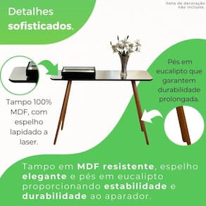 O Aparador Athenas é uma peça que une a beleza da madeira natural à praticidade do design contemporâneo. Seus pés robustos e elegantes em eucalipto conferem um toque de rusticidade sofisticada, enquanto o tampo em MDF proporciona uma superfície sólida e versátil para a exposição de objetos decorativos. Além disso, o aparador acompanha um elegante vidro sobre o tampo, acrescentando não apenas proteção, mas também um toque de elegância e sofisticação ao móvel. Combinando funcionalidade e estilo, este aparador é ideal para complementar a decoração de diversos ambientes, adicionando charme e praticidade ao espaço. Produto Montado: Sim Acabamento: PU Altura do Espelho: 40 cm Ambiente Principal: Sala de Estar codigo_ean: 7909903620830 Complexidade da Montagem: Baixa: pode ser montado por uma pessoa sozinha Cor: Preto / Mel Cor do Produto: Preto / Mel Escala de Brilho: Fosco Espessura do Espelho: 3 mm Espessura do Vidro: 3 mm Formato do Espelho: Retangular Itens Inclusos: 1 Tampo + 4 Pés + Kit ferragem + Manual de montagem. Largura do Espelho: 120 cm Manual de Montagem e Instalação: https://product-hub-prd.madeiramadeira.com.br/884725/documents/06eced74-602d-41df-be67-7a8bac3aaba0ualmontagemaparadorathenas.pdf Material dos Pés: Eucalipto Material Principal: MDF Necessita Montagem: Sim Peso: 14,86 kg Possui Adega: Não Possui Espelho: Sim Possui Gavetas: Não Possui Pés: 04 Possui Portas: Não Possui Prateleiras: Não Possui Rodízio: Não Possui Vidro: Sim Quantidade de Espelho: 01 Recomendações de Uso, Manutenção e Limpeza: Pano levemente umedecido e pano seco. Não utilizar produtos de limpeza Sapatas Niveladoras: Não Sistema de Montagem: PARAFUSOS Suporta Até (kg): 15 kg Tipo de Fixação do Espelho: Silicone Marca: Sparta Móveis