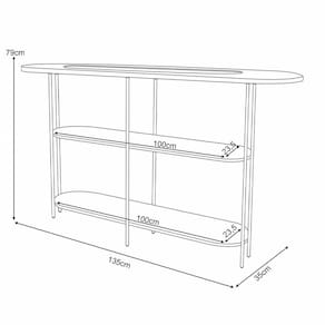 Esse aparador decorativo é produzido com materiais nobres que garantem durabilidade e um acabamento impecável. A começar pelo tampo superior, com detalhe usinado e vidro embutido, que não apenas encanta os olhos, mas também proporciona uma superfície prática para exibir suas melhores peças decorativas. As prateleiras oferecem amplo espaço para livros, objetos e lembranças, permitindo que você crie uma composição única e pessoal. Já os pés em aço maciço com acabamento dourado conferem um toque de glamour, como também asseguram estabilidade e resistência ao móvel.