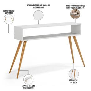 Características: Estrutura em MDP 15mm com acabamento em melamina BP. 04 pés palitos de 60cm. 01 nicho com amplo espaço para diversos objetos. Suporta até 6 kg distribuídos.