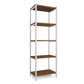 Aparador Para Sala Em Aço 5 Prateleiras 50 cm Imbuia Branco Zed Steel Mobile - Marrom