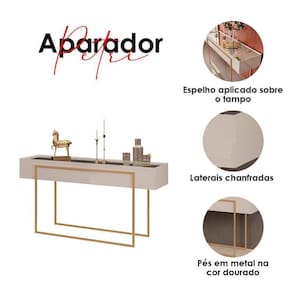 Está procurando móveis para montar sua sala? Apresentamos para você este belo aparador da linha Petri. Seu tampo com espelho aplicado entrega um charme especial, valorizando o ambiente. As laterais são chanfradas agregando elegância e delicadeza, enquanto seus pés de metal na cor dourado oferece um design moderno e luxuoso. Fabricado pela DJ Móveis, é desenvolvido em MDP/ MDF de alta qualidade, com chapas vindos de madeira de reflorestamento, garantindo resistência, durabilidade e sustentabilidade. Sendo uma peça versátil para utilizar tanto em sala de estar, jantar ou hall de entrada, trazendo um toque refinado para diversos ambientes. Confira e aproveite!